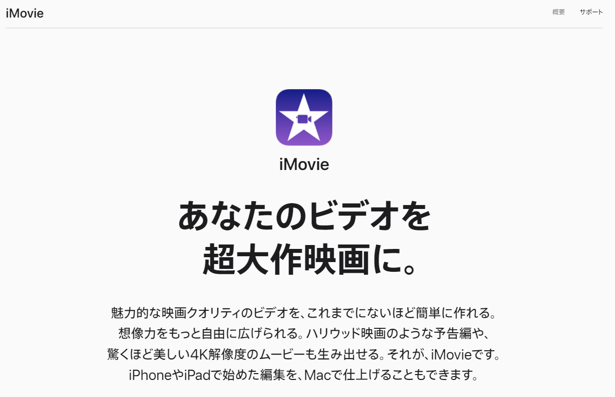 「iMovie」はiPhoneやiPadを使用して動画編集ができるアプリで、音楽や写真を取り込み、「ムービー」と「予告編」の2種類の動画を作成できます。